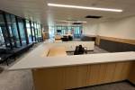 The solution was to spend the necessary time planning and executing precisely in order to meet restricted schedules and durations. The time permitted to install cabinets, wall panels, custom items like display cases and desks, became crucial and we were able to ramp up our production and custom shops in order to produce the items in a timely manner without sacrificing quality.